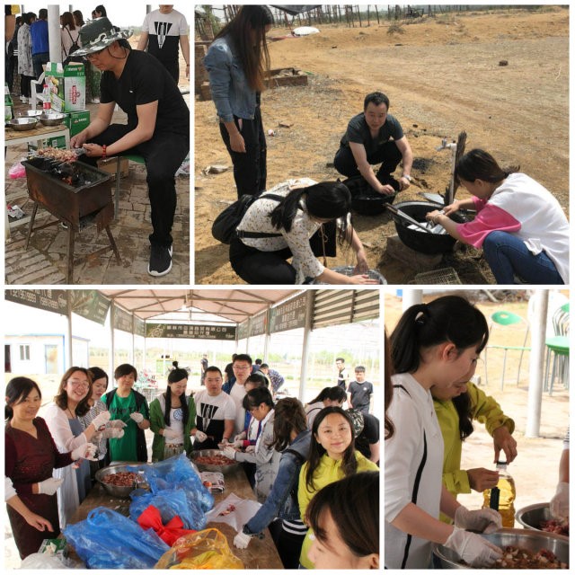 是時(shí)候表演真正的技術(shù)了:野外烤肉即將開始。大家積極參與,有的搭帳篷,有的洗菜,有的串肉,有的搭火爐......忙碌而快樂著。