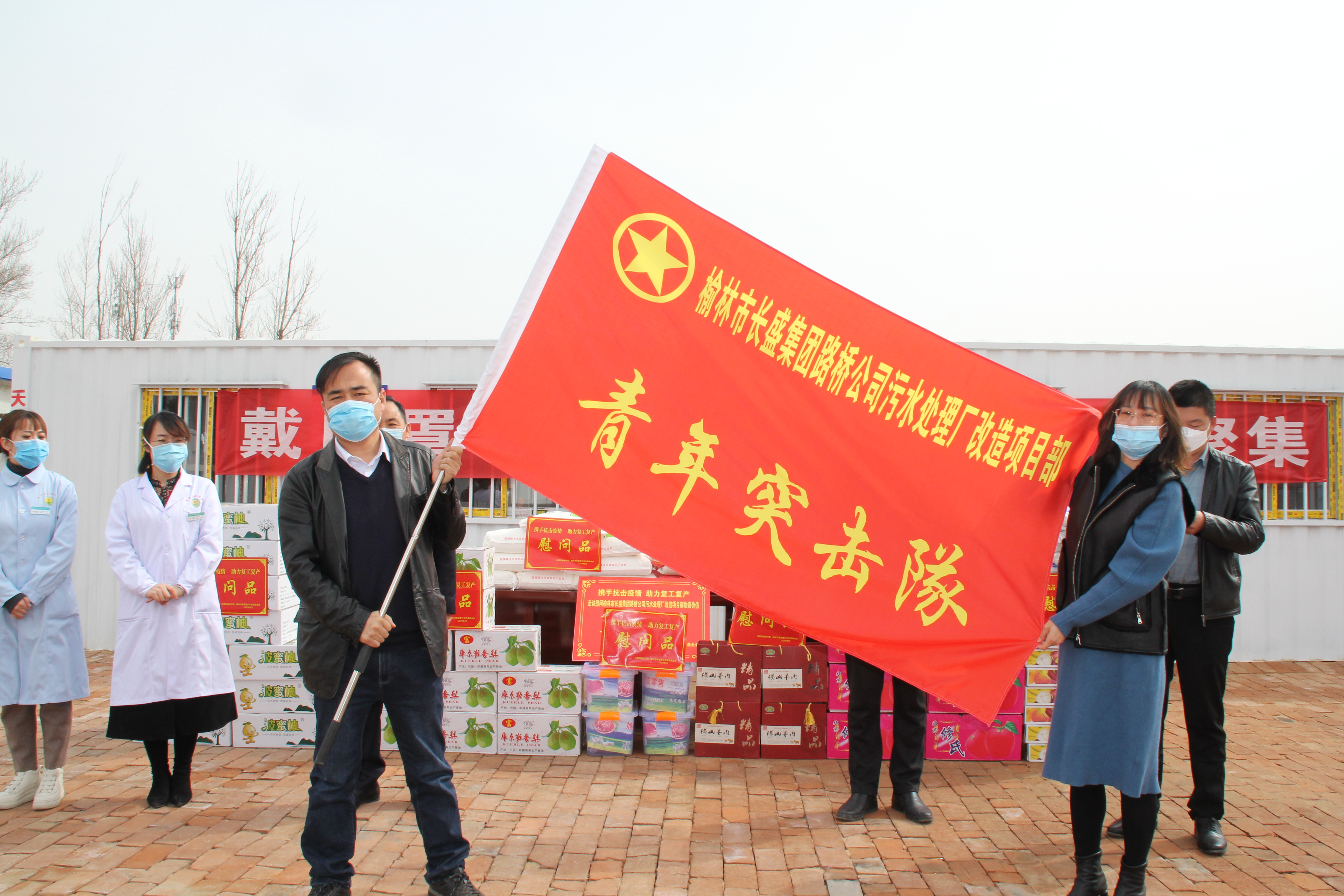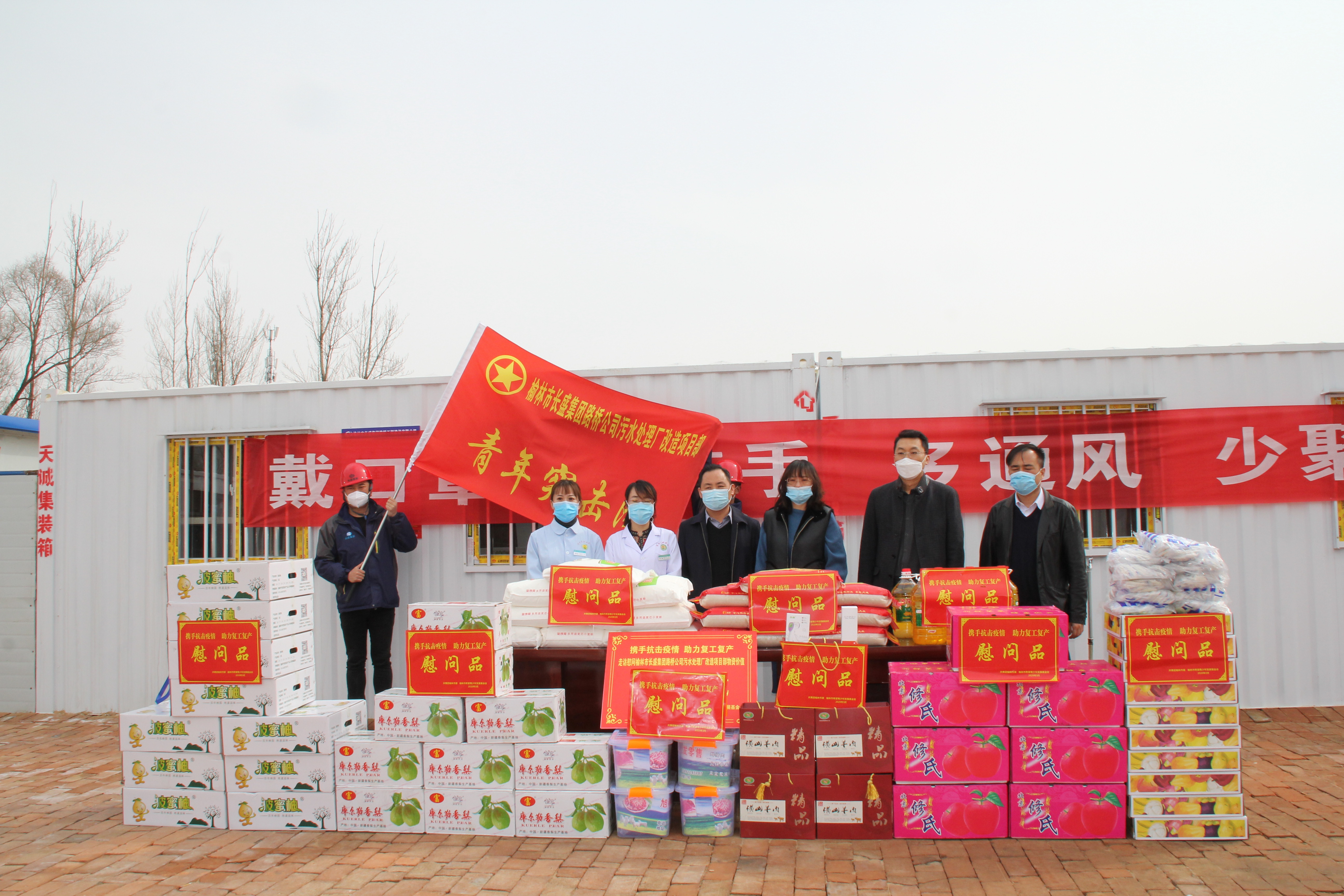為進(jìn)一步推動(dòng)復(fù)工復(fù)產(chǎn)工作,3月12日上午,由榆林團(tuán)市委領(lǐng)導(dǎo)聯(lián)合榆林市中醫(yī)北方醫(yī)院等相關(guān)部門,親切走訪慰問(wèn)了我公司污水處理廠提標(biāo)改造項(xiàng)目部的一線員工,并帶來(lái)了各種防疫和生活物資,讓我們?cè)谶@寒冷的復(fù)工時(shí)節(jié)倍感溫暖。
