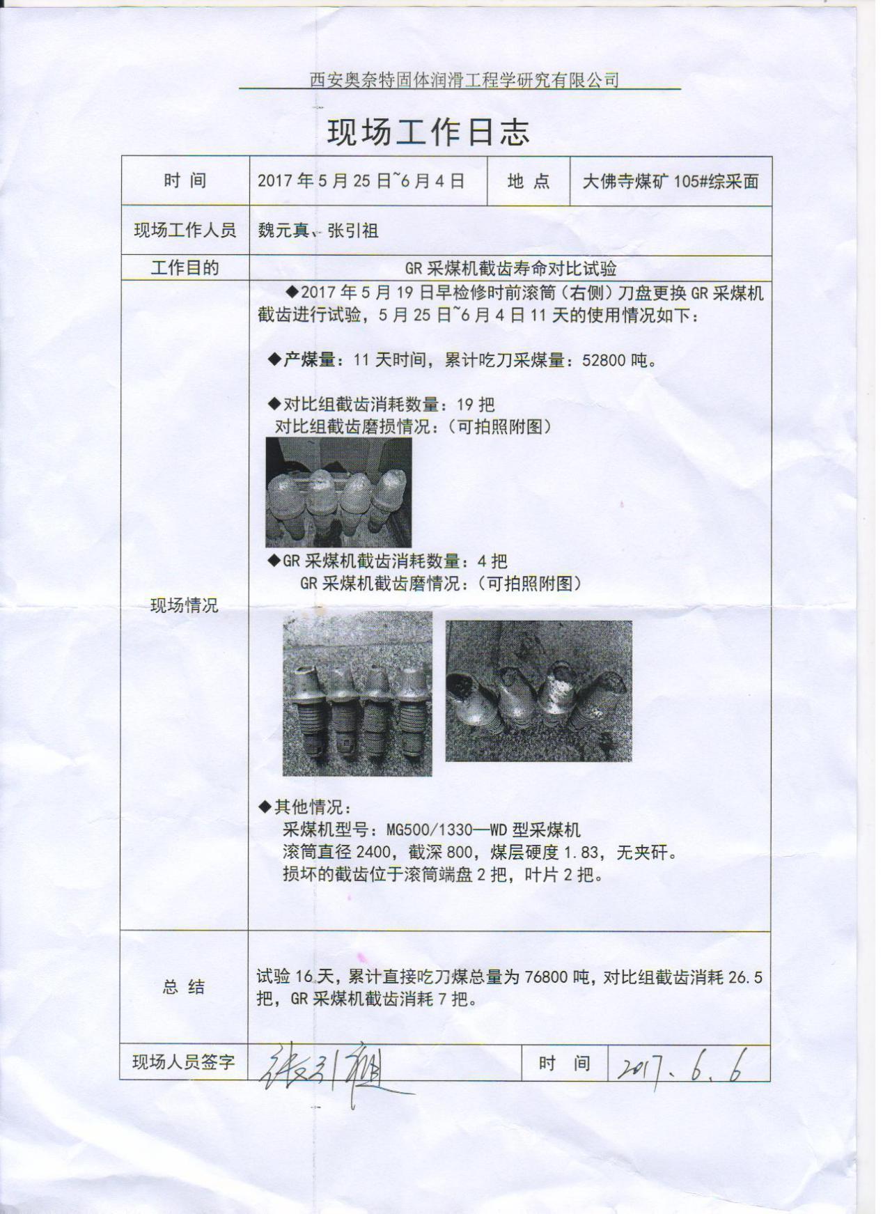 截齒應(yīng)用報(bào)告