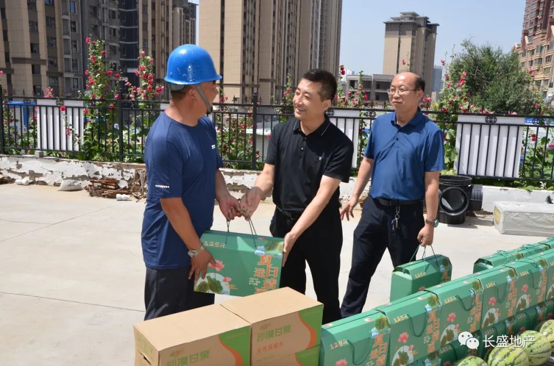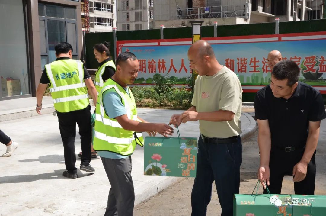 7月13日,榆林市長盛集團(tuán)房地產(chǎn)開發(fā)有限公司開展2022年度“情系職工送清涼”慰問活動,看望慰問榆林區(qū)內(nèi)在建項(xiàng)目一線員工,為他們送去小米、綠豆、白糖、西瓜等防暑降溫物品。